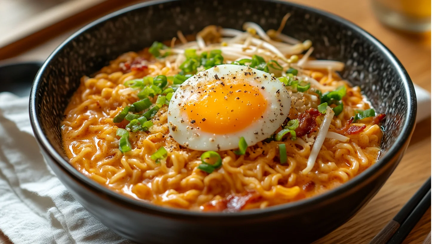Carbonara Buldak Ramen 🍜: Spicy Korean-Italian Fusion