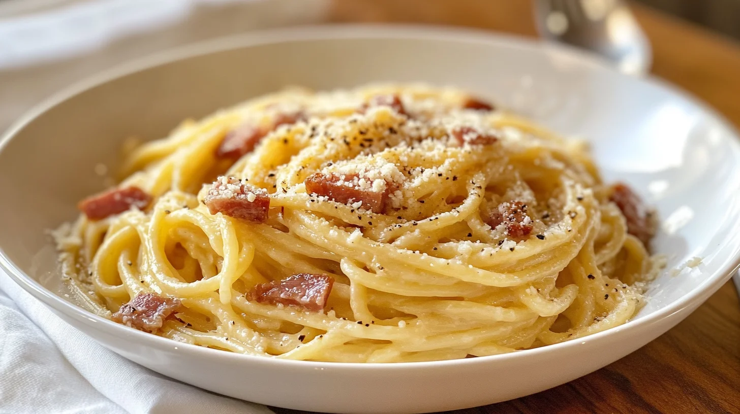 Carbonara is a pasta dish from Rome made with eggs, hard cheese (Pecorino Romano or Parmesan), cured pork (guanciale or pancetta), and black pepper. The eggs are tempered by the hot pasta and rendered fat to form a creamy sauce. “Easy” here means no double boiler and clear steps to avoid scrambled eggs. The dish is pure comfort — salty, cheesy, and satisfying.