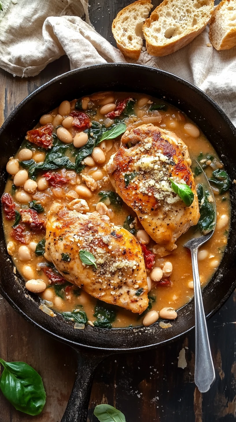 Tuscan chicken with white beans is a rustic Italian-inspired stew featuring chicken, beans, and vegetables simmered in a savory tomato-based broth. The dish gets its name from Tuscanyβs traditional use of simple, high-quality ingredients. Itβs a complete protein meal thatβs high in fiber and iron.